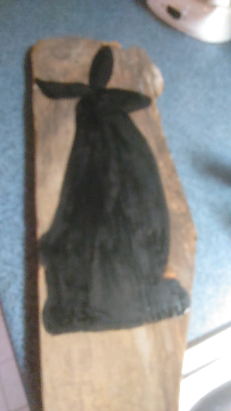 I sanded it, to clean off the dirt, and then drew the outline and painted my rabbit silhouette in black acrylic. Don't over think it, just draw and paint it.
